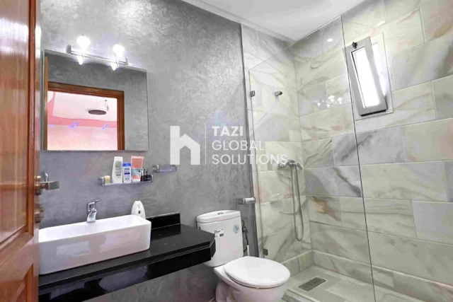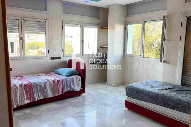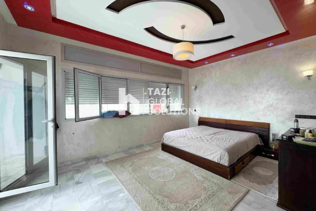 Cette villa spacieuse de 380 mètres carrés de terrain, située dans le quartier Golf , s’étend sur trois niveaux raffinés. Avec ses cinq chambres, chacune dotée de sa propre salle de bain, elle allie confort et intimité. Les trois grands salons offrent des espaces de vie lumineux et conviviaux, tandis que la cuisine entièrement équipée ravira les gourmets. La piscine couverte et le sauna promettent des moments de détente privilégiés. Un cadre parfait pourune vie familiale épanouissante !
