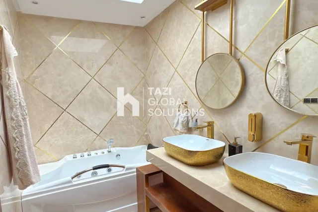 Découvrez cette villa VIP située dans le quartier Golf, offrant un espace généreux de 500 mètres carrés. Composée de six chambres et quatre salles de bain, elle garantit confort et intimité pour toute la famille. Les deux grands salons sont parfaits pour se réunir, tandis quela grande table à manger invite à des repas conviviaux. Un espace dédié à la spiritualité avec une mosquée et un hammam ajoute une touche unique. La cuisine équipée et la piscine complètent ce havre de paix, idéal pour une vie sereine et harmonieuse.